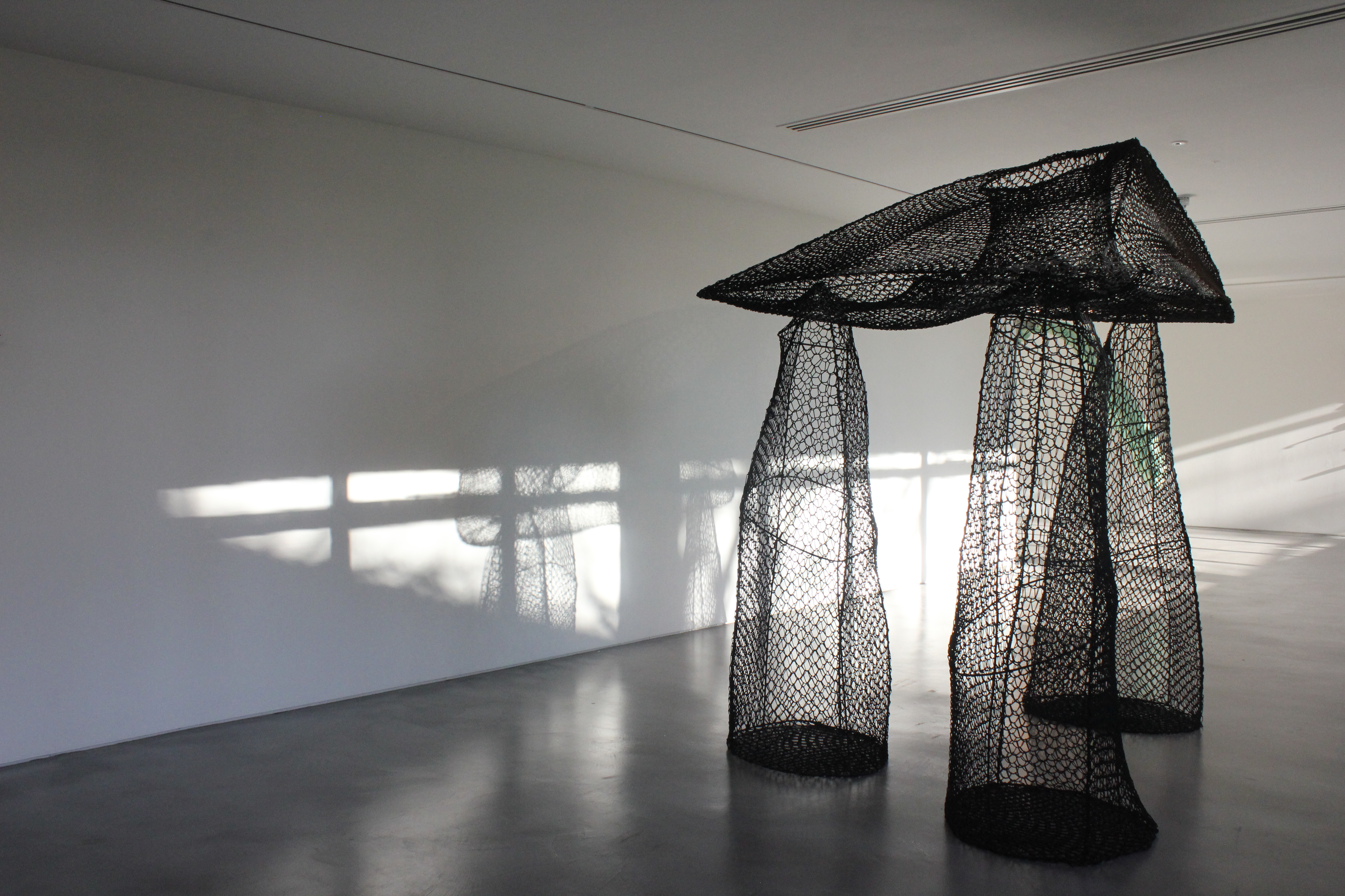 Jaws (2023) Bladderwrack seaweed, aluminium, fishing line.